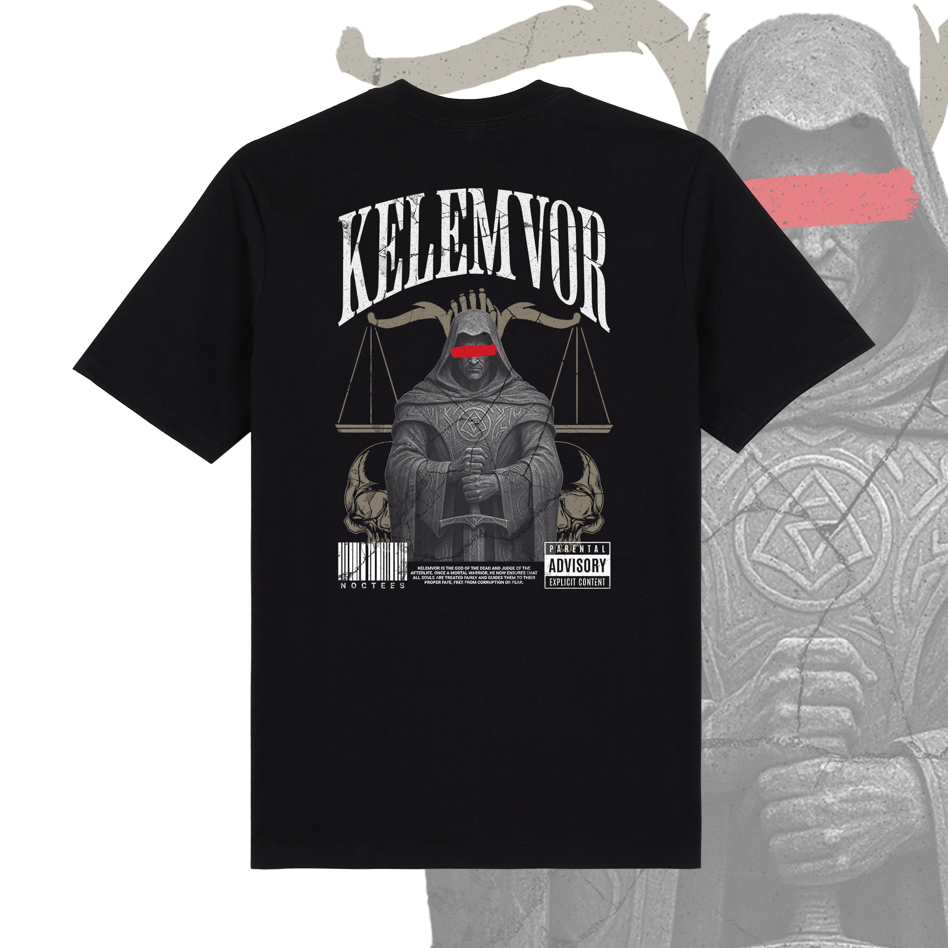 Kelemvor is the god of death, justice, and the eternal balance—guiding souls to their rightful rest without fear or favor. Once a mortal, now a divine arbiter, he stands as a symbol of calm authority in the face of the inevitable. This statue-style design fuses divine judgment with street-level cool, turning reverence into raw presence.