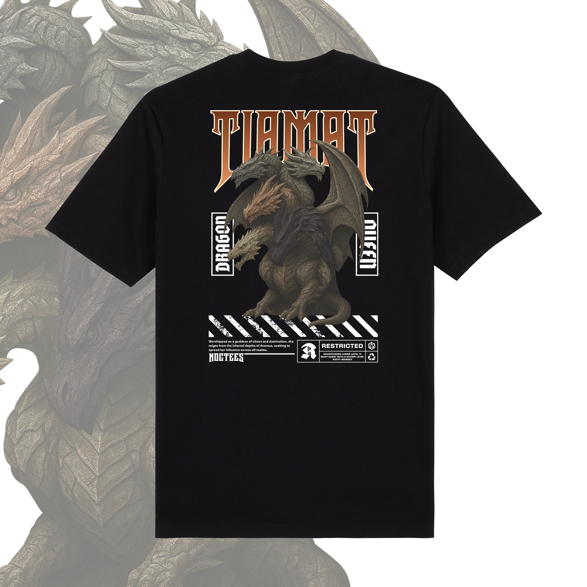At the bottom of the design, a brief summary of her legend reminds all who gaze upon her: Tiamat is not just a dragon—she's a force of fear, worship, and awe.