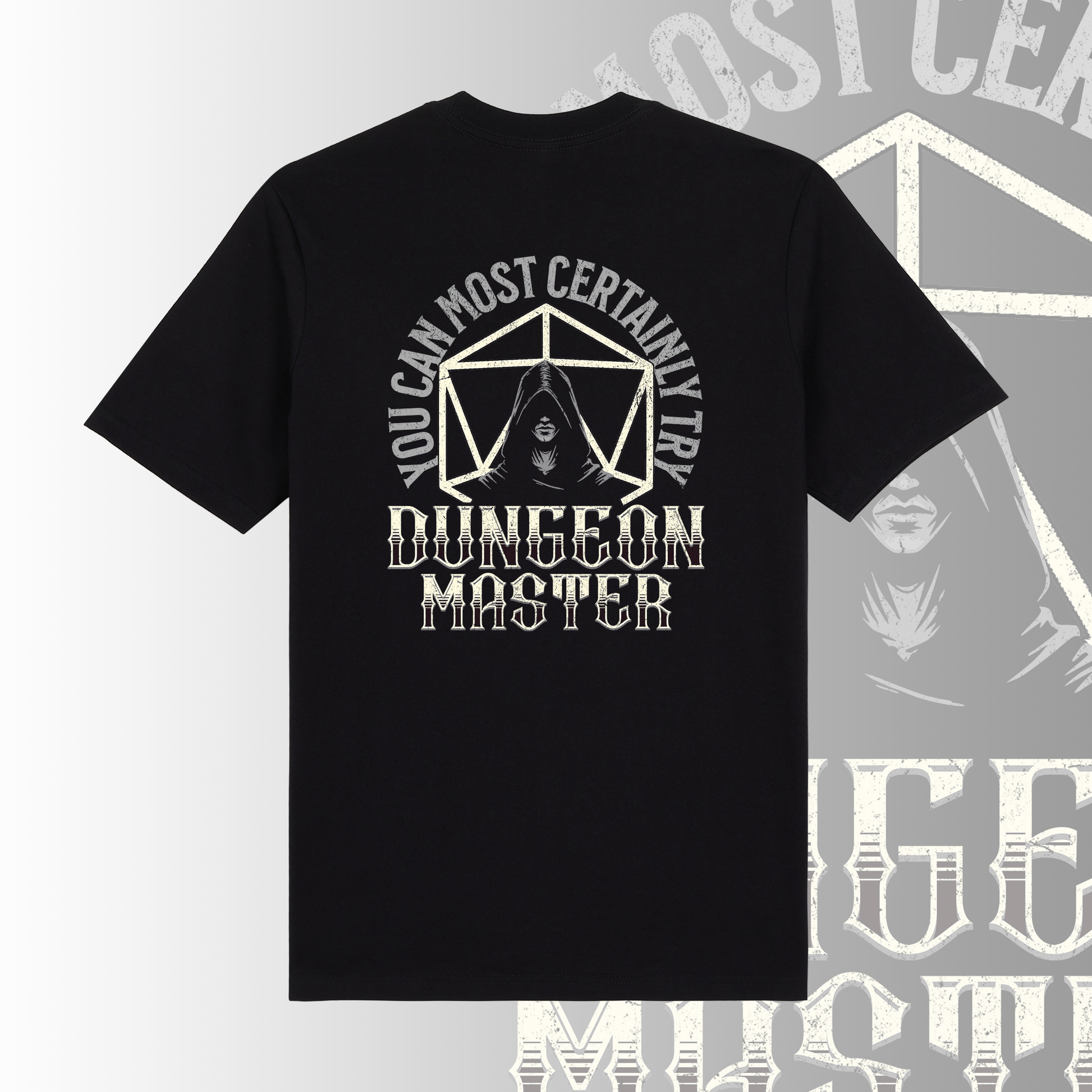 With a bold gothic back design and the iconic phrase “You Can Most Certainly Try,” this shirt captures the quiet menace and boundless creativity of the DM’s chair. It's not just a role—it’s a warning.